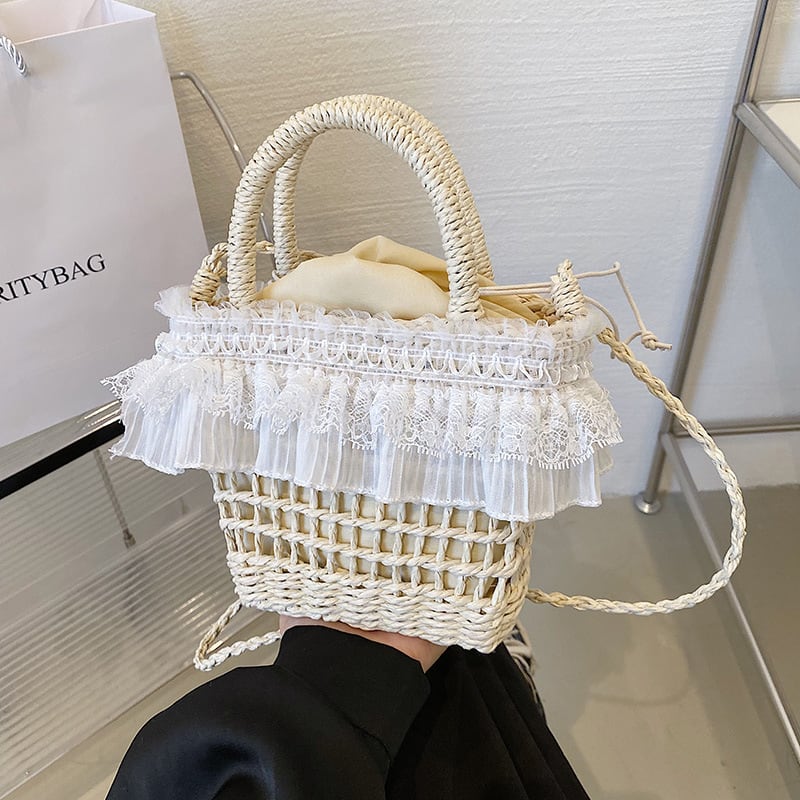 繊細なレースで夏らしい爽やかさを演出、大人可愛いレースカゴバッグ。