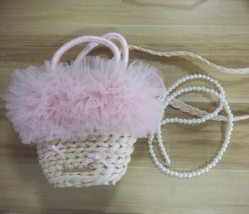 旬のトレンド感のある小さいリボンとチュールがポイントの可愛らしいかごバッグが登場♪