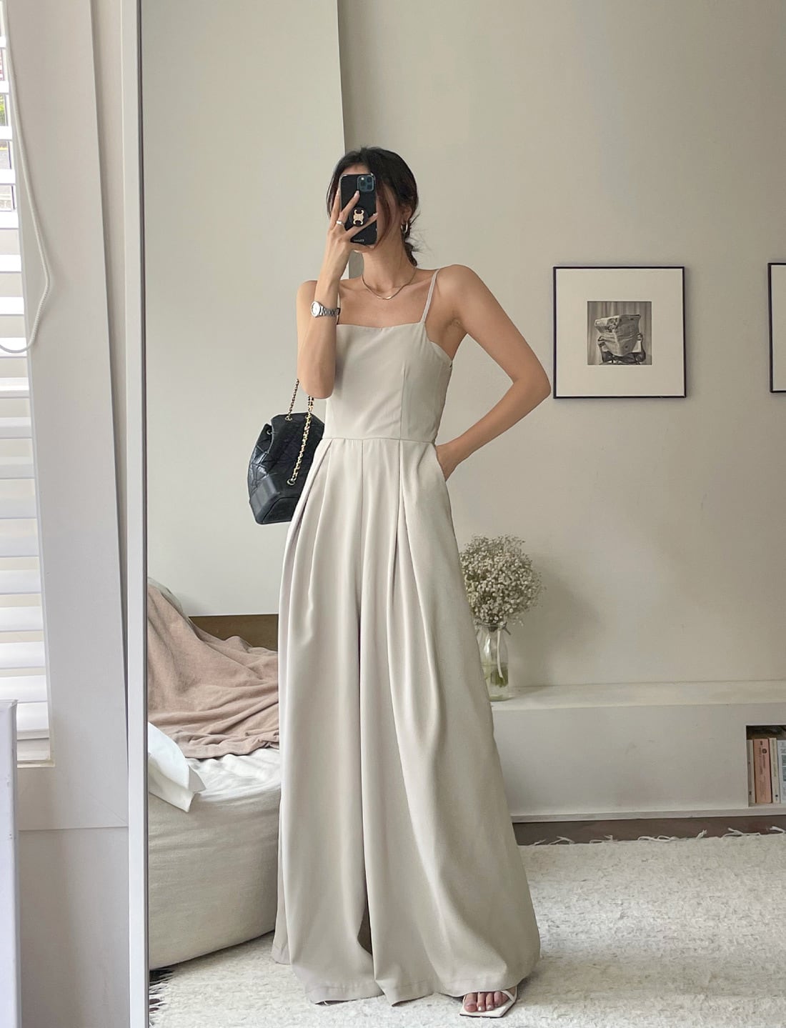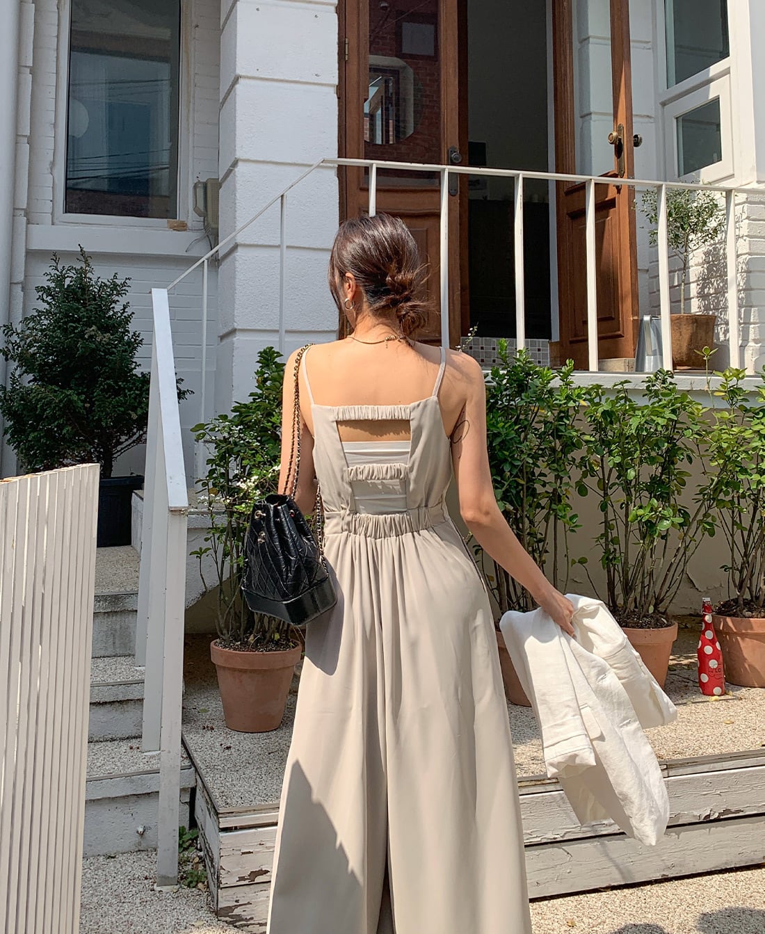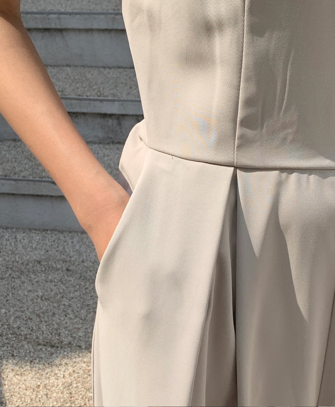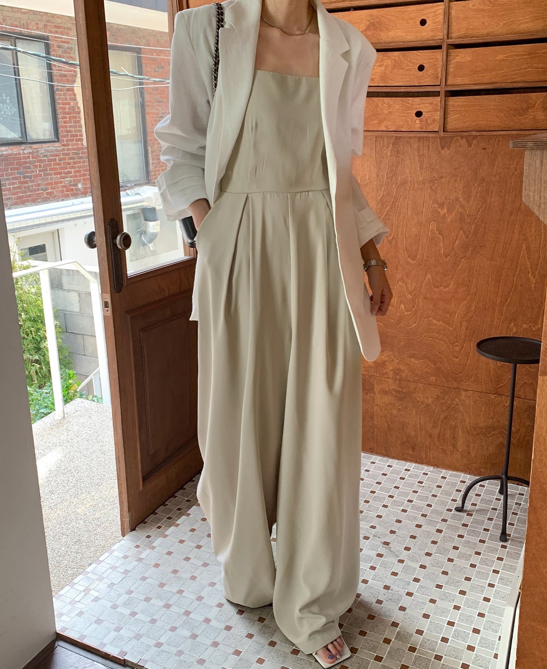ボトムはワイドなシルエットでリラクシーな雰囲気で涼しく着用いただけます。