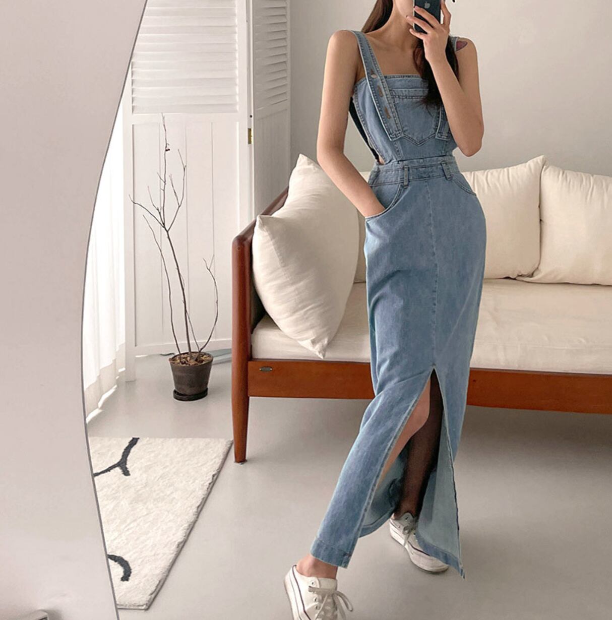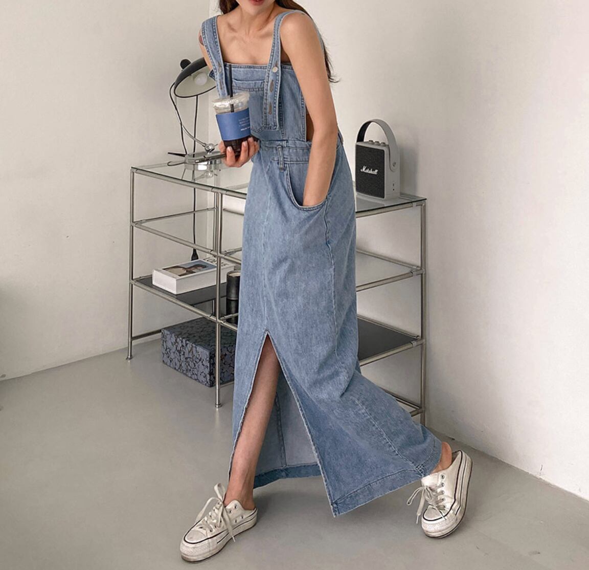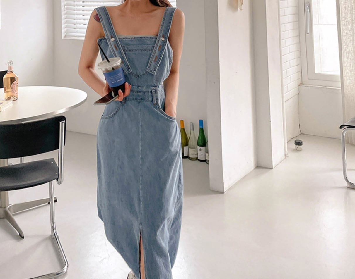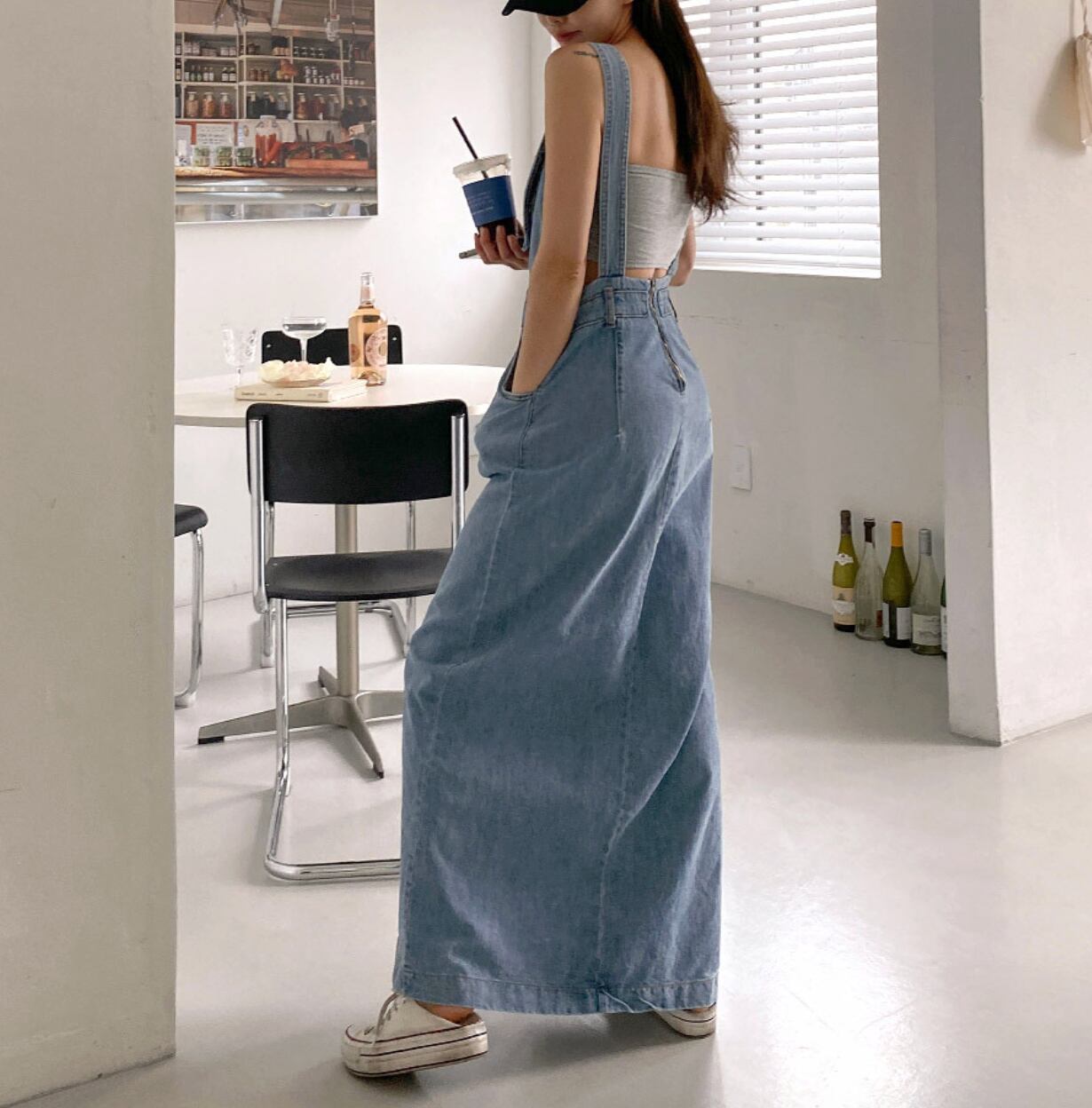 程よくタイトなシルエットで女性らしく着こなせるデニムサロペットスカートが登場!