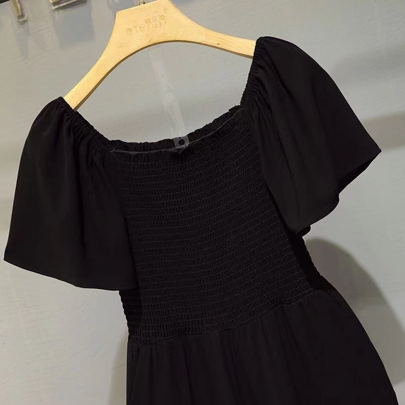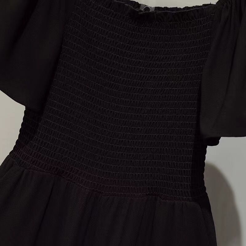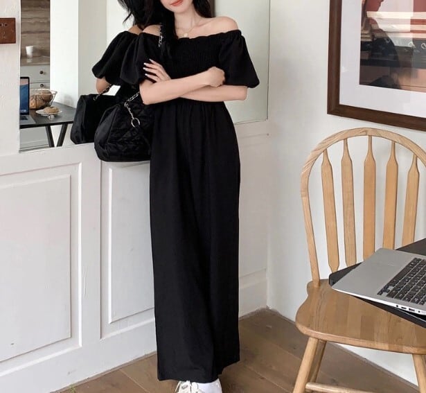 フレアスリーブはヒラリとなびいてブラックコーデを軽やかに涼しく魅せてくれます。