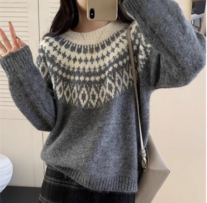 温かみのある素材感と飽きの来ない定番のノルディック柄のニットプルオーバー。