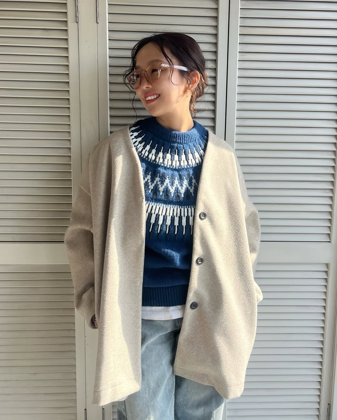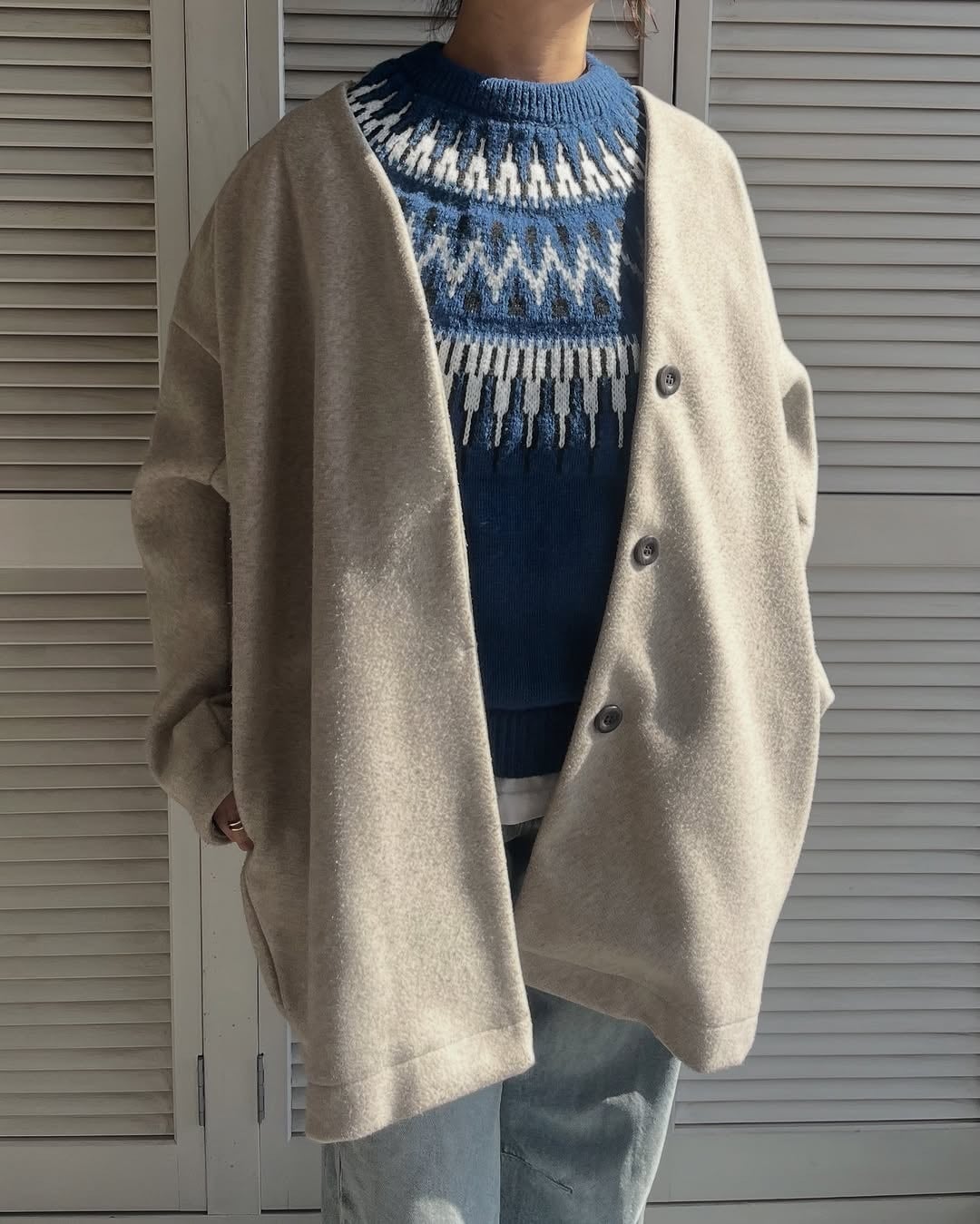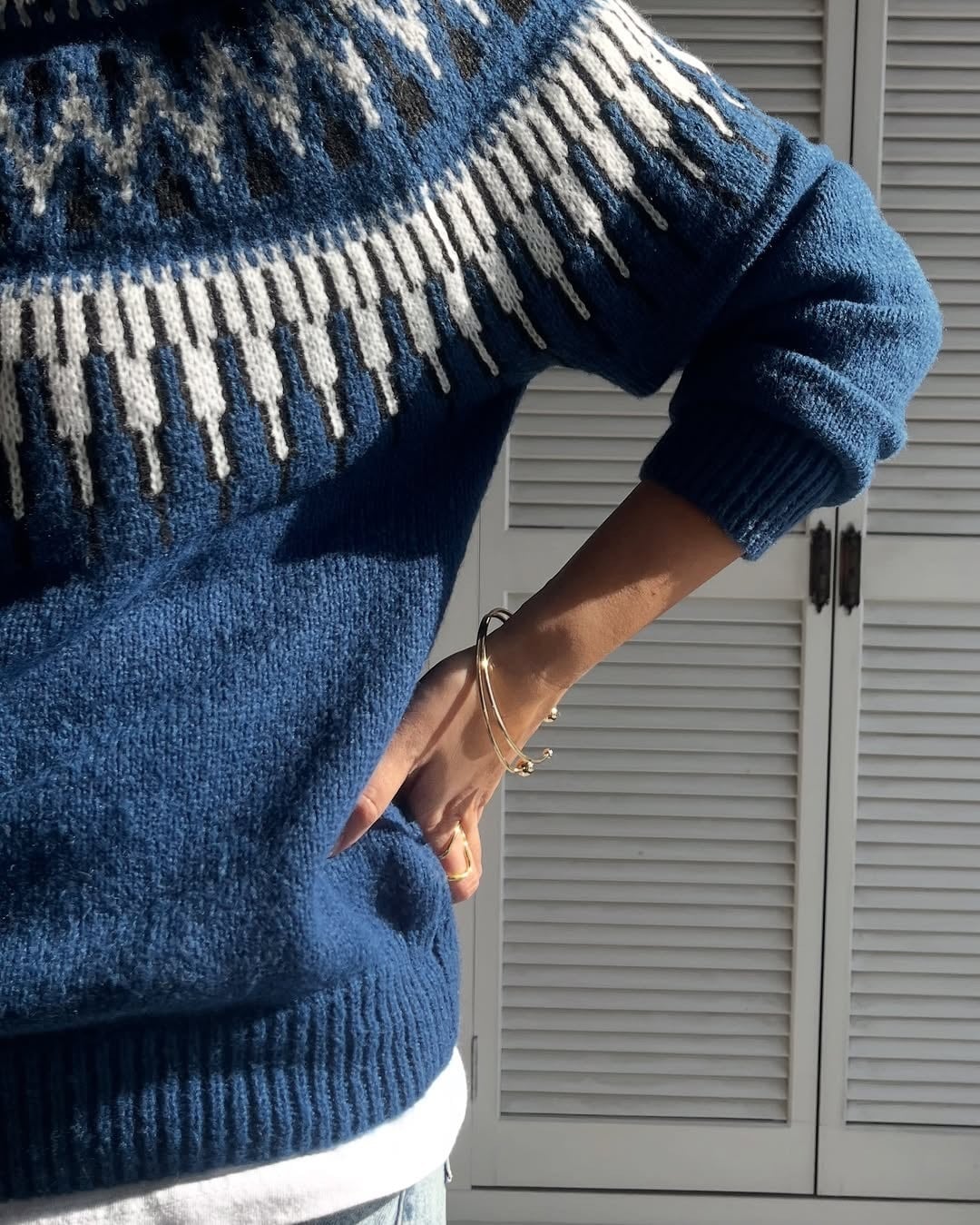 シーズンムード漂う求心柄ニット。