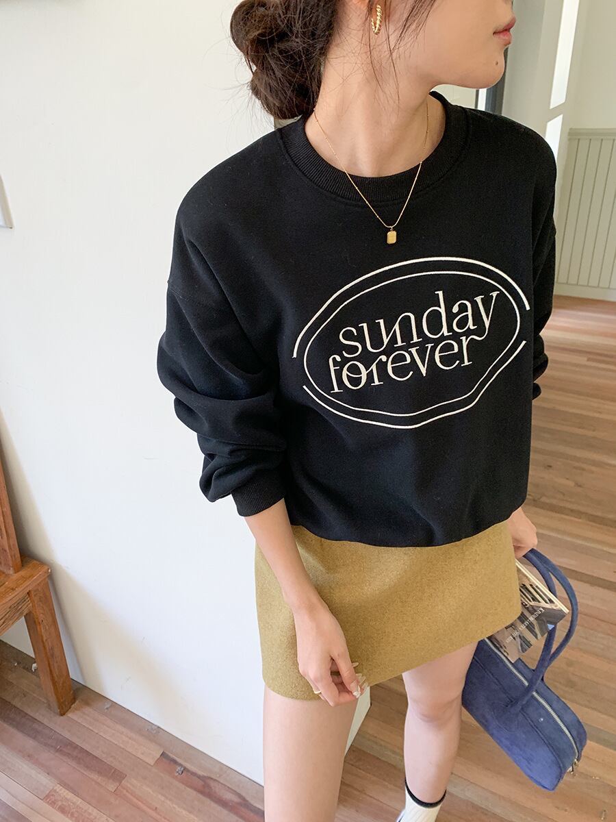 刺繍ロゴのボリューム袖スウェットプルオーバー。