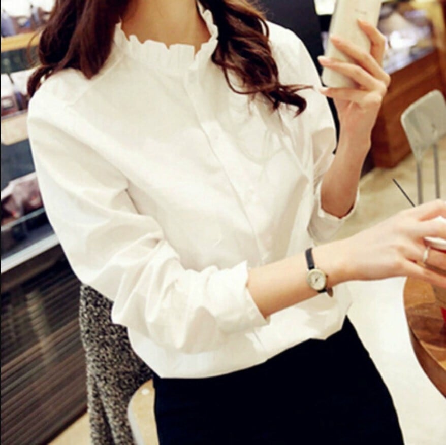 首元のフリルが可愛いシャツです。