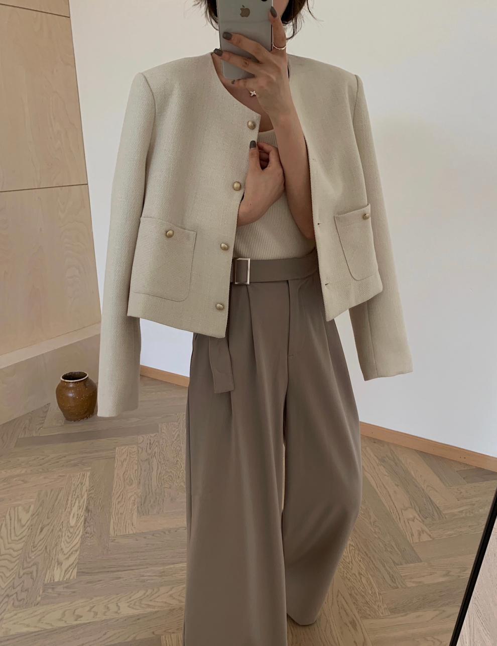 ジャストウエストの丈感でコンパクトに見えますが程よくゆとりがあるので着心地も◎