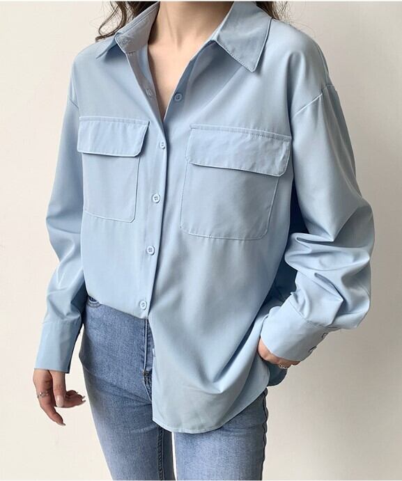 適度なハリ感のあるストレッチ素材を使用したオーバーサイズのシャツ。