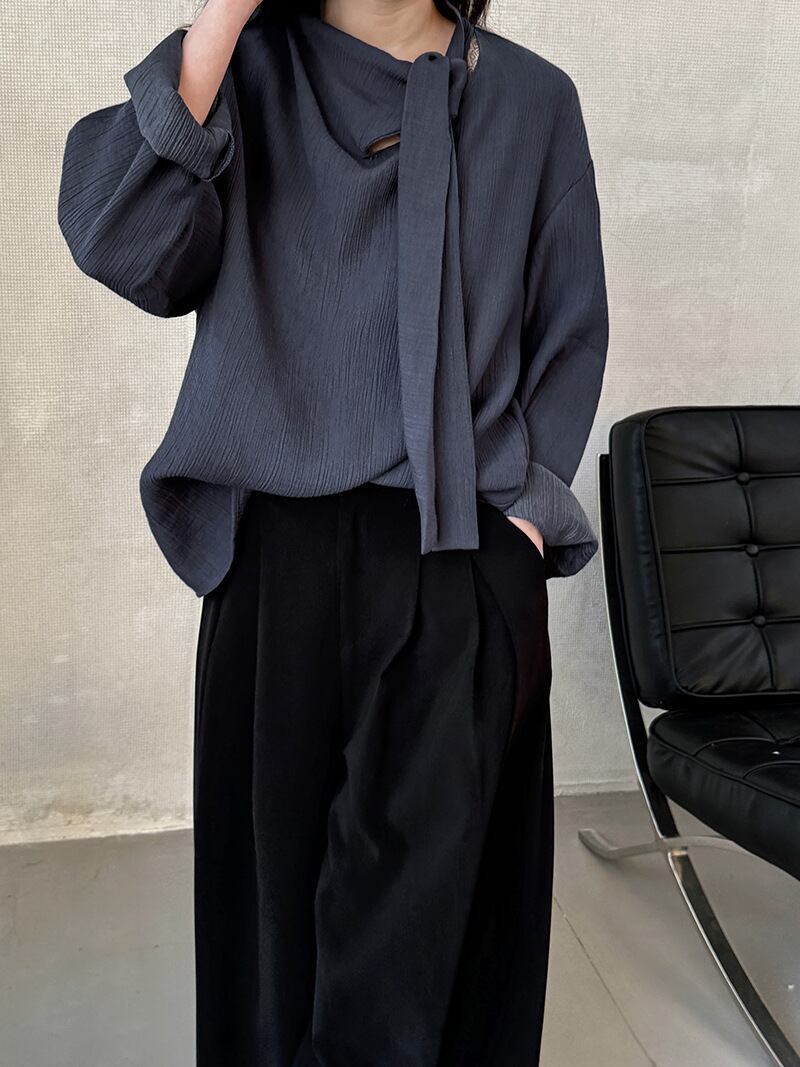 シワ加工が施されたフロントドレープカットソー。